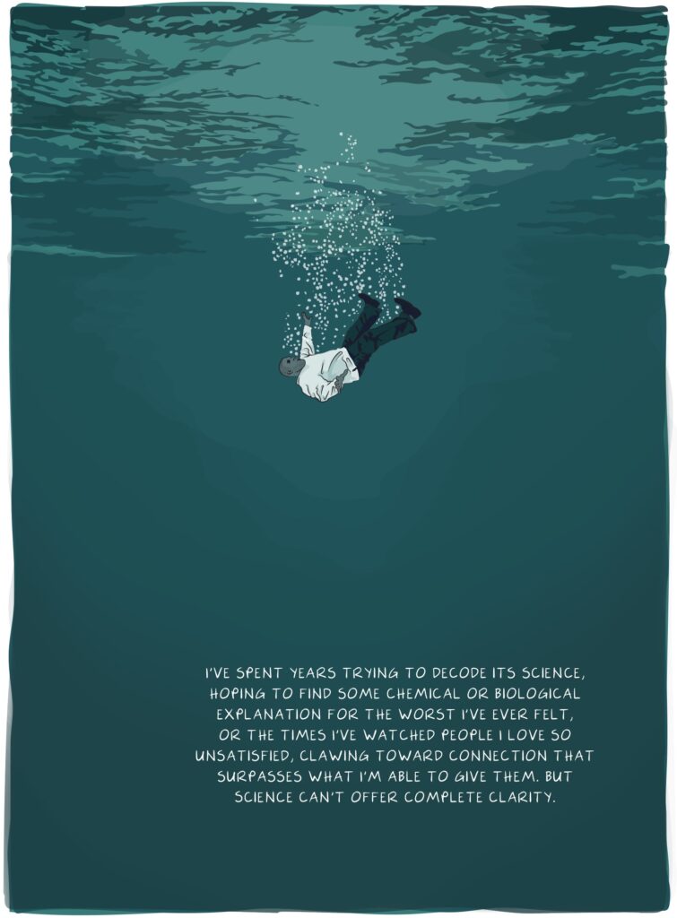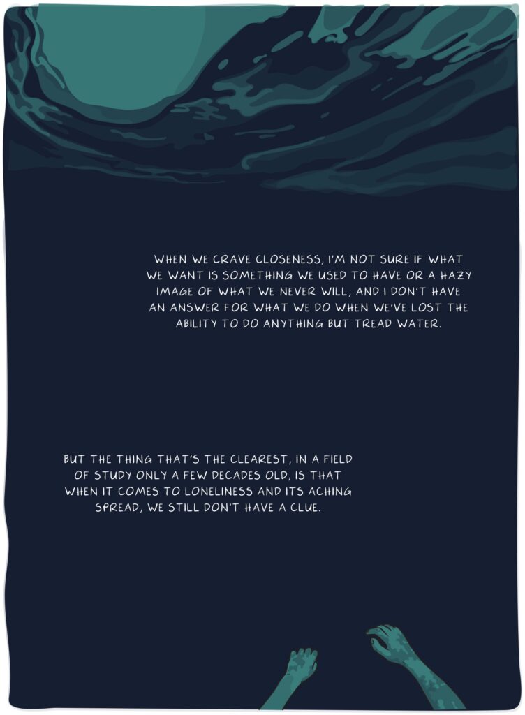 There's intimacy in drawing, too, in the enormous attention it takes to render a human form or face. I was disappointed to lose that in the audiobook, such as when I recorded the loneliest memories of some of my friends, which I'd lettered around their faces in the print book. The portraits to me felt imbued with the feeling of their stories, and I hated severing the two. But to speak their experiences out loud was also a closeness I couldn't create on the page.